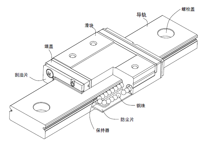 ? 滾動循環(huán)系統(tǒng):滑塊、導(dǎo)軌、端蓋、鋼珠、保持器