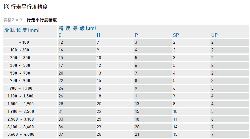 直線導軌精度等級對照表
