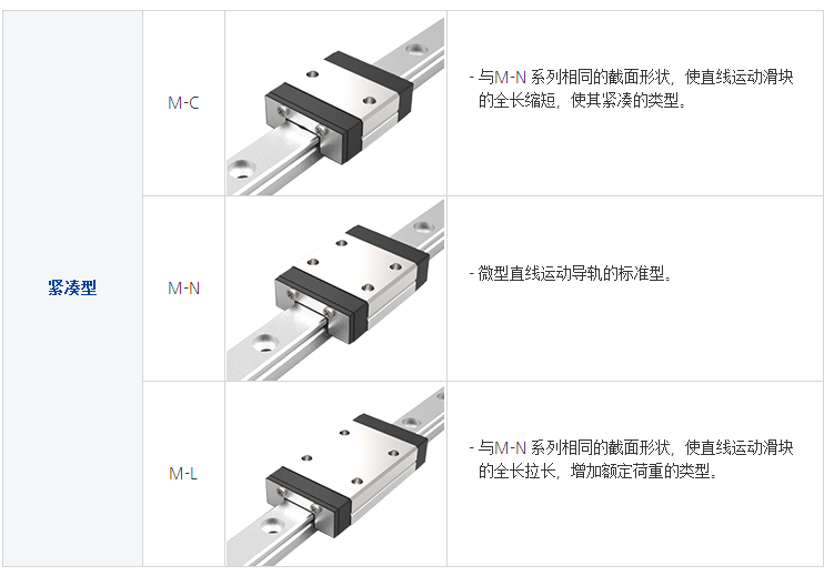 體積小、輕量化,滑塊主體的一部分采用了樹脂材料,重量減少約20%,特別適合小型化設(shè)備使用。不銹鋼材質(zhì)之線性滑軌,包含滑塊、滑軌及其它金屬配件如鋼珠、保持器等,皆使用不銹鋼材質(zhì),具備防銹的特性。采用哥德型四點接觸設(shè)計,可承受各方向負(fù)荷,具備剛性強,精度高等特性。有鋼珠保持器設(shè)計,在精度允許下具備互換性。